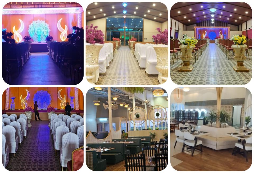 • आमच्याकडे बेनक्वेट हॉल उपलब्ध आहे. ३००-५०० क्षमतेचे. • सुविधा -डेकोरेटेड कारपेट एरिया स्टेज.• AC, बुफे, चेंजींग रुम्स, साउंड सिस्टीम, वेल एम्बीयन्स.