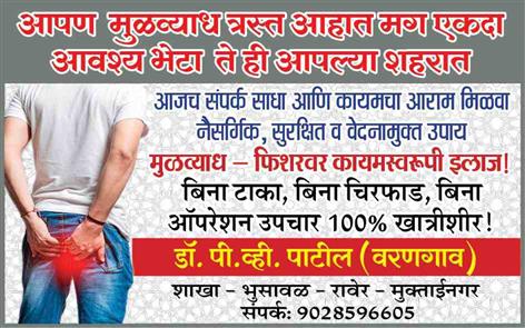 📩 आपणास पाइल्स / फिशर / फिस्टुला या संदर्भात अधिक माहिती जाणून घ्यायची असल्यास किंवा या त्रासाने आपण त्रस्त असल्यास, आपल्याला योग्य मार्गदर्शन करण्यासाठी कृपया आपली लक्षणे कळवा.
